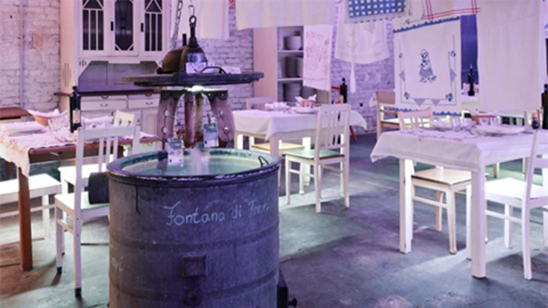 in den ehemaligen Räumen einer Wäscherei. Ein alter Waschtrog wurde Fontana di Trevi